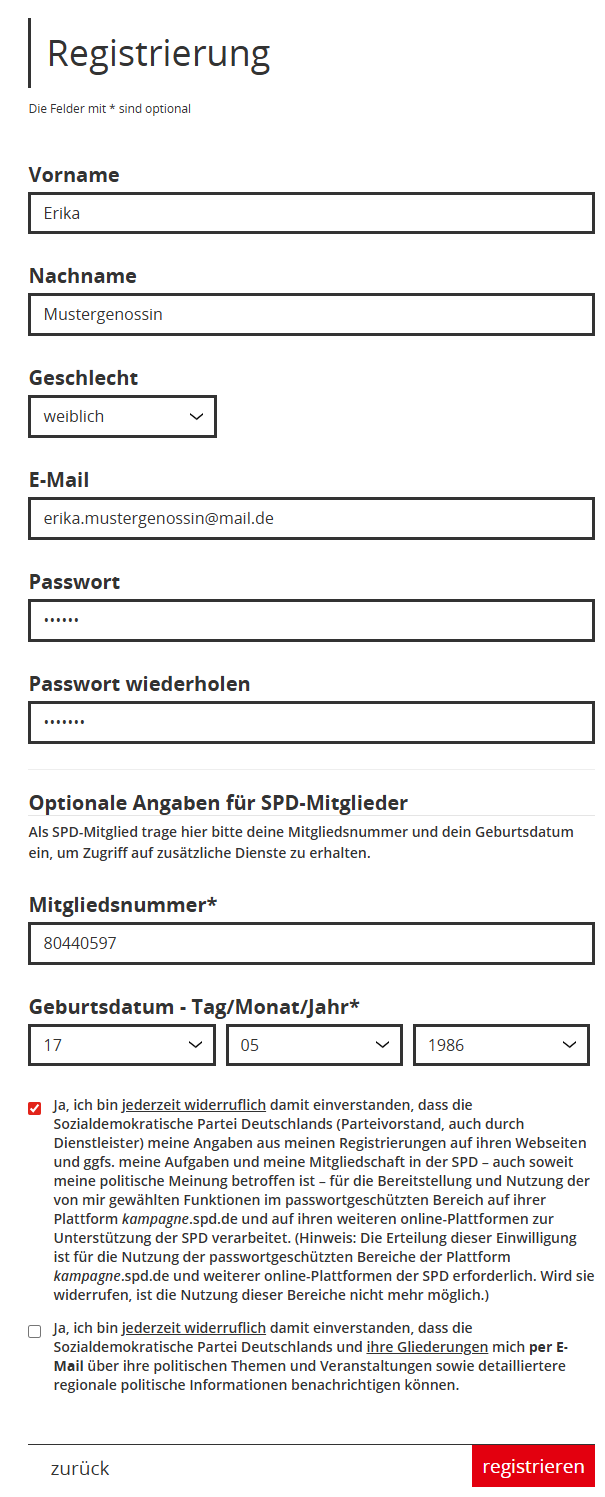 Solltest Du dich bereits registriert haben, aber Deine Mailadresse vergessen oder keinen Zugang mehr zu dieser haben, wird es leider komplizierter. Du musst dich in diesem Fall an die SPD-Geschäftsstelle wenden. Sie weiß, welche E-Mail-Adresse Du hinterlegt hast. Du kannst ihr aber auch eine andere E-Mail-Adresse nennen und eine neue Aktivierung anfordern.